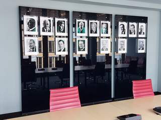 Die Ehrentafel der ehemaligen BDI-Präsidenten (v.l.n.r.): Fritz Berg, Hans-Günther Sohl, Hanns Martin Schleyer, Nikolaus Fasolt, Rolf Rodenstock, Hans Joachim Langmann, Tyll Necker, Heinrich Weiss, Hans-Olaf Henkel, Michael Rogowski, Jürgen R. Thumann, Hans-Peter Keitel, Ulrich Grillo, Dieter Kempf. © BDI