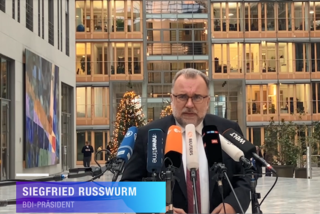BDI-Präsident Siegfried Russwurm äußert sich zur Einigung der Bundesregierung in der Haushaltskrise vor der Presse. © BDI