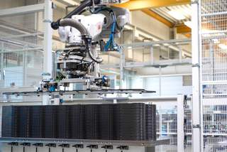 In Berlin wird Siemens Energy künftig Elektrolyseure im industriellen Maßstab fertigen. Roboter helfen bei der Automatisierung der Produktion. © Siemens Energy