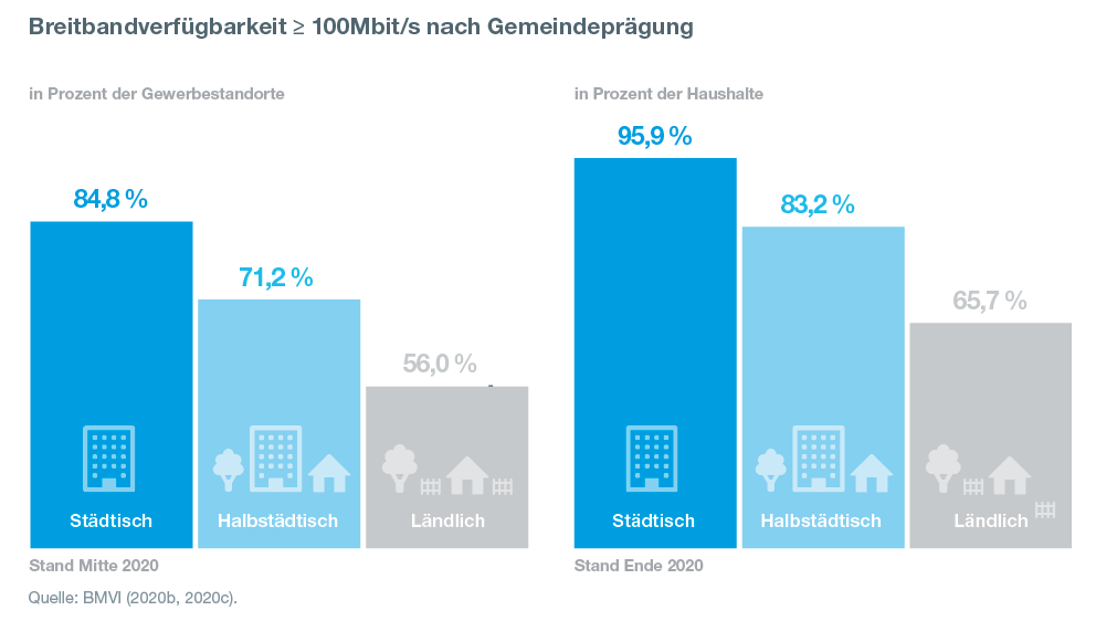 Die Breitbandversorgung reicht in vielen ländlichen Räumen allenfalls aus, um einige Beschäftigte gleichzeitig in Videokonferenzen zu halten. Umfassende digitale Prozesse und Industrie 4.0 sind so nicht gewährleistet. Es gilt, die Konkurrenzfähigkeit der Unternehmen in der Fläche zu sichern und Deutschland endlich flächendeckend an die Möglichkeiten des 21. Jahrhunderts anzukoppeln.
