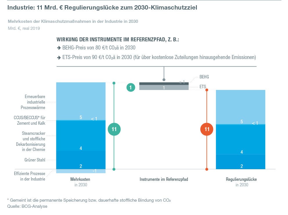 - Für die Industrie stellen bei Investitionsentscheidungen nicht allein die Kapitalkosten, sondern vor allem die deutlich höheren Betriebskosten von klimafreundlichen Technologien die größte Herausforderung dar. Daher müssen die Nutzungskosten CO2-armer Produktionsverfahren und Energieträger wettbewerbsfähig gemacht werden gegenüber den fossilen Energieträgern und bestehenden Prozessen.