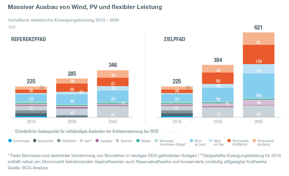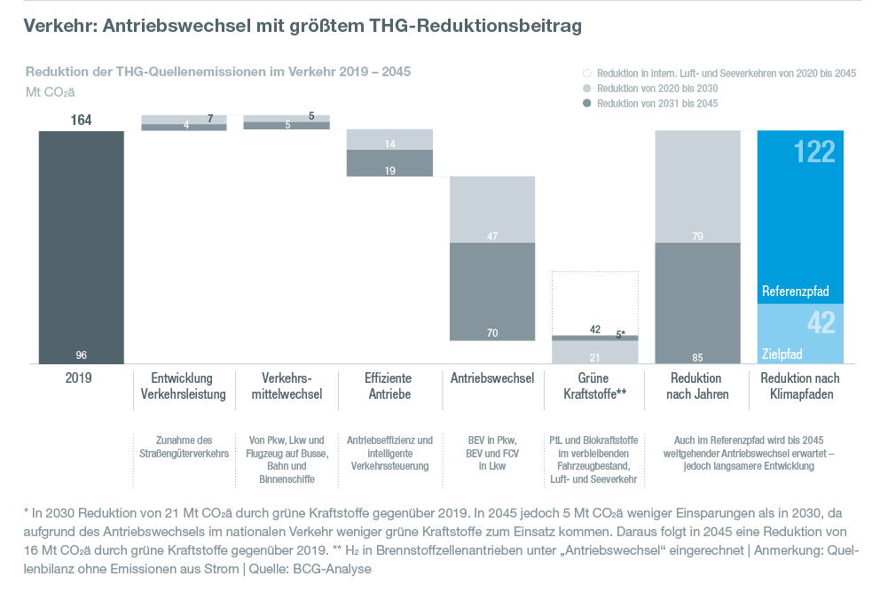 - Dafür ist ein massiver Infrastrukturausbau über die bestehenden Planungen hinaus in Höhe von 145 Milliarden Euro für Strom-, Wasserstoff-, Fernwärme- und CO2-Netze, Lade- und Wasserstofftankinfrastruktur, Verkehrswege, v. a. Schiene, notwendig.