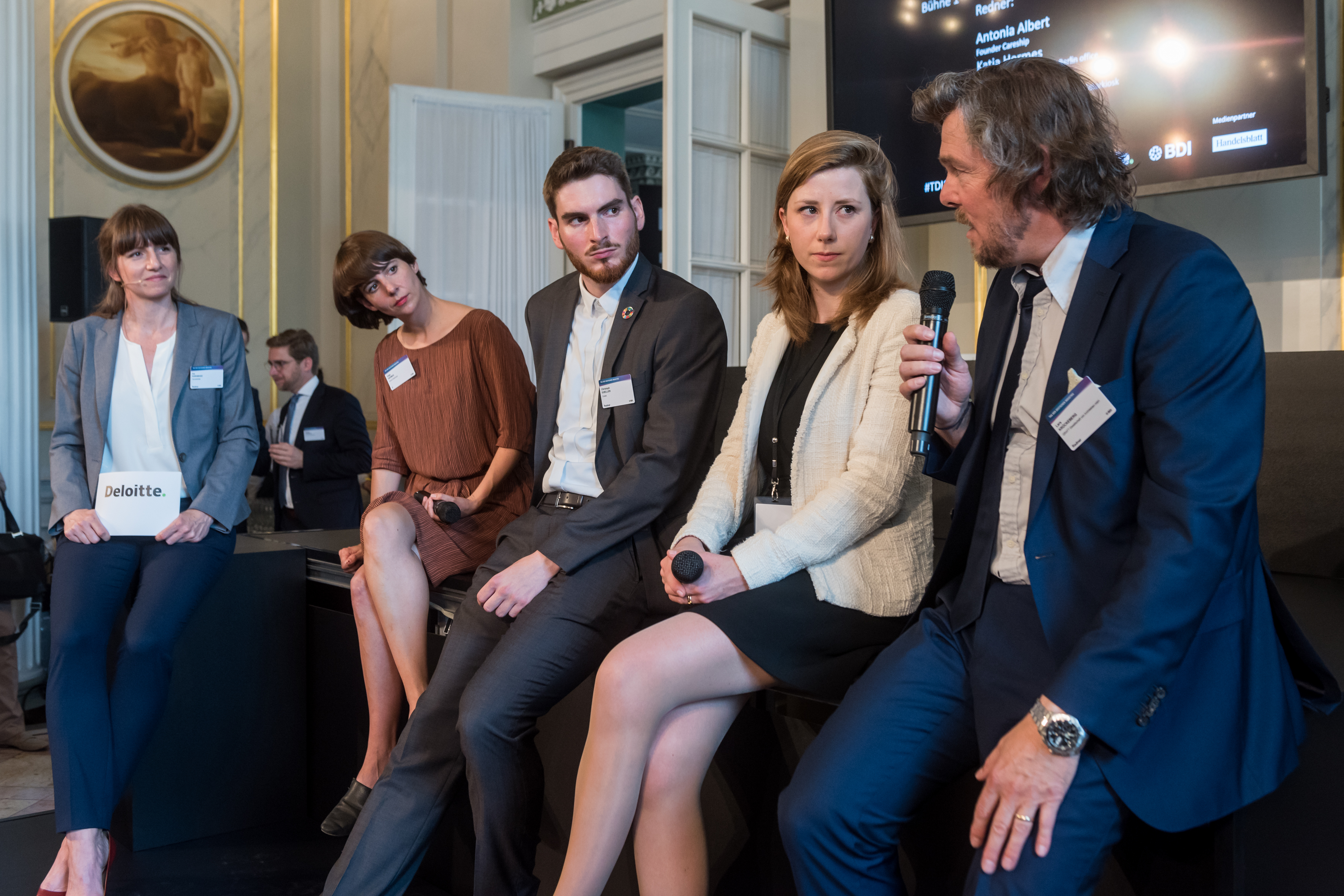 Die Digitale Transformation ist ganz wesentlich und birgt für uns ein riesiges Potenzial in der Wirtschaft aber auch in der Gesellschaft insgesamt, so Gastgeber und Managing Partner Christopher Nürk, Deloitte. Unter dem Label „Influencer“ luden Deloitte in Kooperation mit dem BDI und dem Handelsblatt junge Unternehmer ein, um der Frage nachzugehen, welche Innovationen, Services und Produkte Trends setzen können. So entwickelte Christoph Goeller, Co-Founder des Startups Coolar eine neue Kühltechnik, die mit Wärme statt mit Strom kühlt. Damit ist sie bestens für den Einsatz in Regionen geeignet, die noch nicht durchgehend elektrifiziert sind. Ebenfalls vertreten war Antonia Albert, Co-Founder des jungen Unternehmens Careship, das die Pflege durch digitale Services vereinfacht und damit mehr Lebensfreude schafft. Katja Hermes, Gründerin des deutschen Ablegers von Sound Diplomacy, berät weltweit Städte in der Umsetzung von Musik-Konzepten.