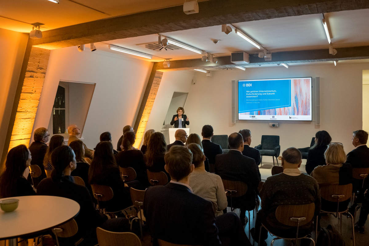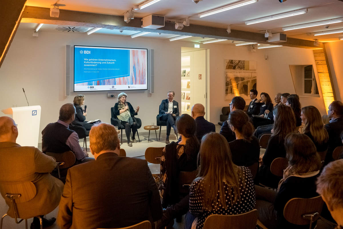 Vor dem Hintergrund dieser wissenschaftlichen Erkenntnisse fragten Deutsche Bank, BDI und Kulturkreis Ende Februar 2020 zwei Familienunternehmen im Berliner PalaisPopulaire: „Wie gehören Unternehmertum, Kulturförderung und Zukunft zusammen?“
