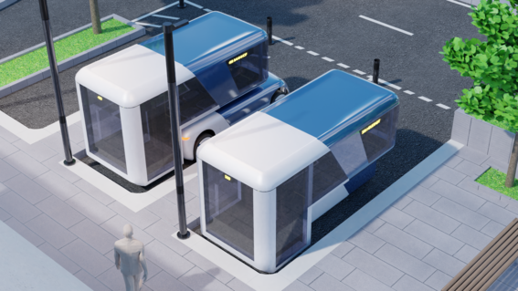Während parkende Fahrzeuge heute ungenutzte Fahrzeuge sind, können abgestellte Transportkapseln in Zukunft auch produktiv sein, zum Beispiel als Paketstationen, mobile Ladengeschäfte oder Recycling-Container. Was früher tote Parkplätze waren, können morgen also Service-Inseln sein.
