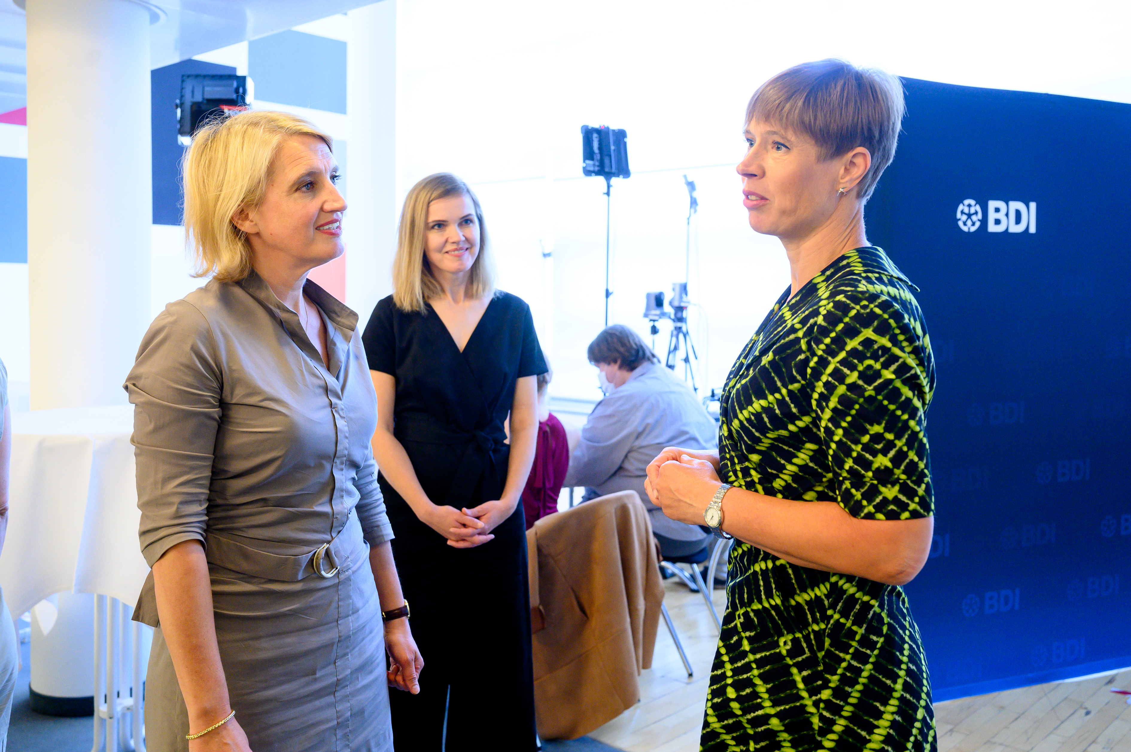 BDI-Hauptgeschäftsführungsmitglied Iris Plöger, BDI-Abteilungsleiterin Daniela Werner und Präsidentin Kersti Kaljulaid (v.l.n.r.) © BDI