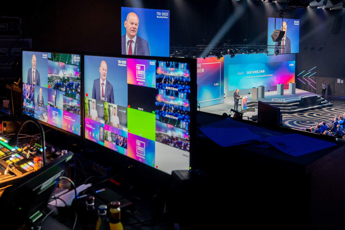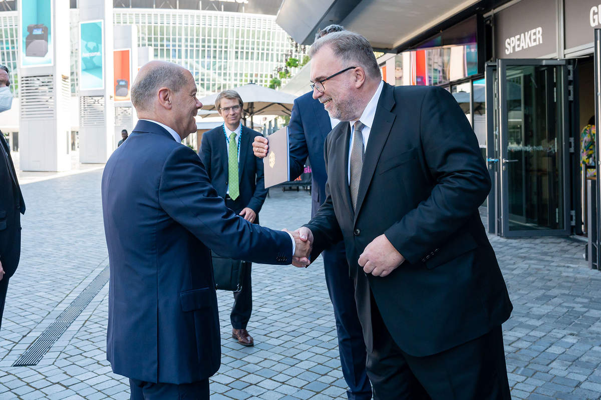 Bundeskanzler Olaf Scholz MdB; Prof. Dr.-Ing. Siegfried Russwurm, Präsident, BDI © Christian Kruppa