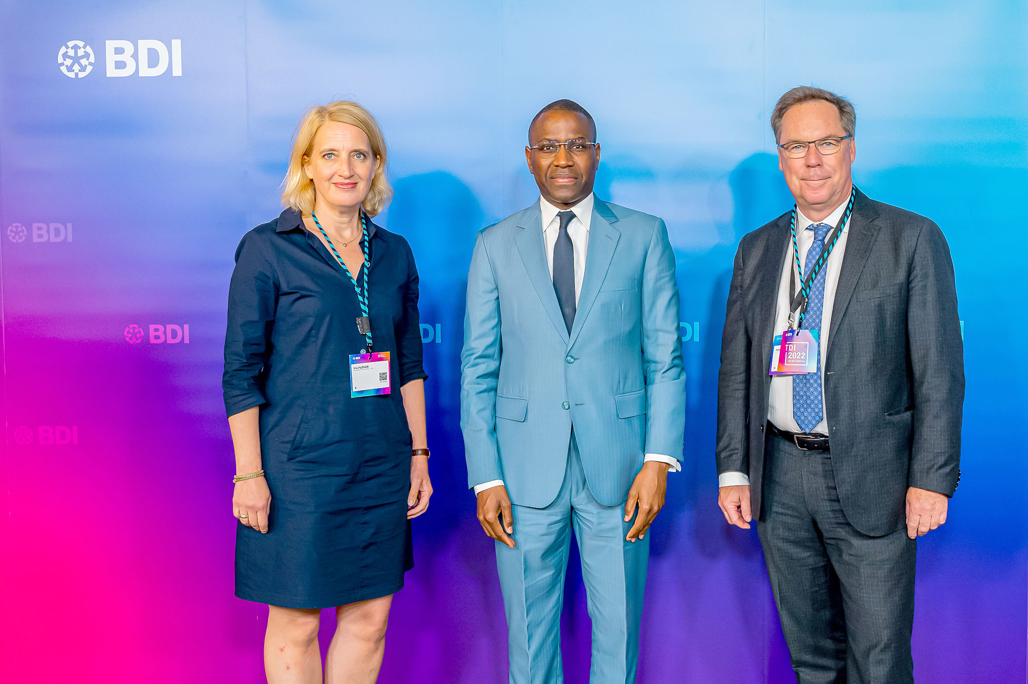 Iris Plöger, Mitglied der Hauptgeschäftsführung BDI; S.E. Amadou Hott, Minister für Wirtschaft, Planung und Zusammenarbeit, Republik Senegal; Holger Lösch, Stellvertretender Hauptgeschäftsführer BDI © Christian Kruppa