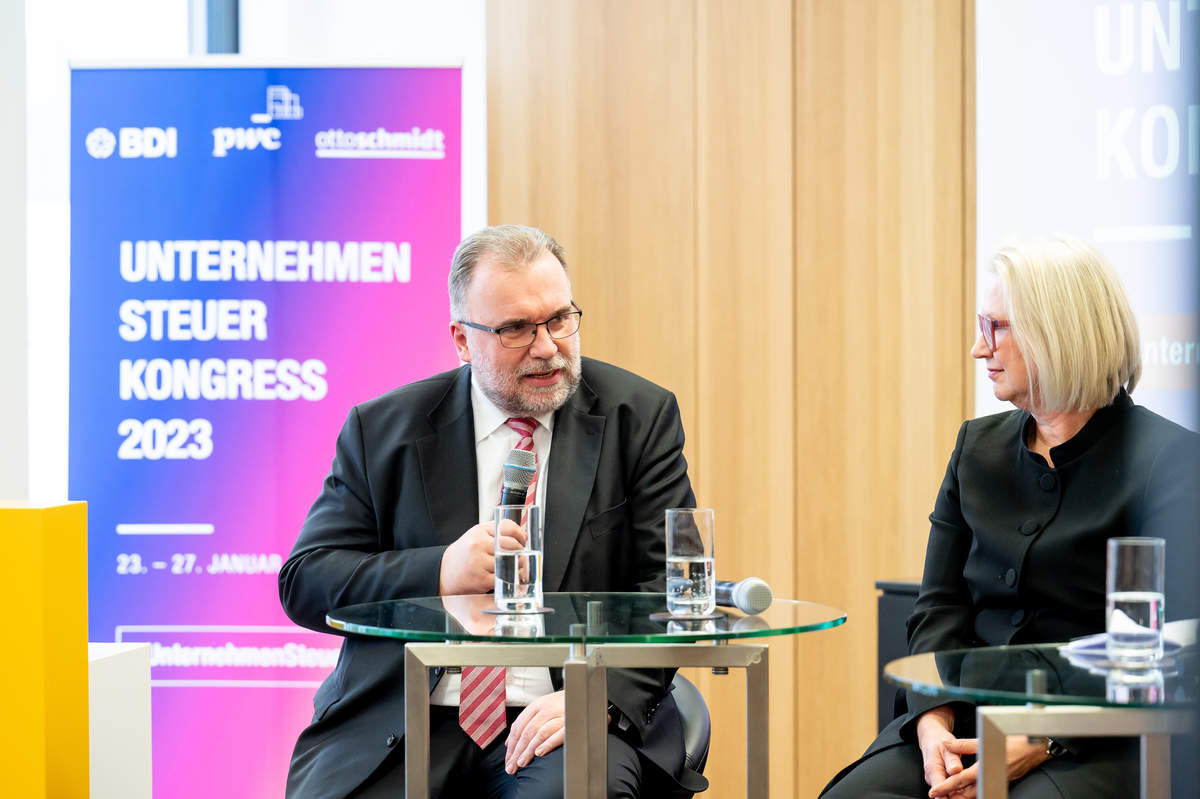 Prof. Dr. Hubertus Bardt, Geschäftsführer des Instituts der deutschen Wirtschaft Köln e.V.; Dr. Monika Wünnemann, Abteilungsleiterin Steuern und Finanzpolitik, BDI © Christian Kruppa