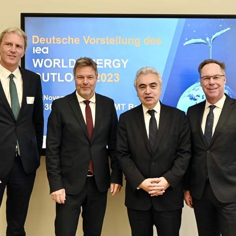 Im November 2023 stellte der Generalsekretär der Internationalen Energieagentur (IEA), Fatih Birol gemeinsam mit dem Bundesministerium für Wirtschaft und Klimaschutz (BMWK), dem BDI und dem Weltenergierat den neuen World Energy Outlook der IEA vor. Die Kernbotschaft: Das globale 1,5-Grad-Ziel beim Klimaschutz zu erreichen, halten die Experten für sehr schwierig, doch nicht für unmöglich. Mut macht der stark beschleunigte Ausbau erneuerbarer Energien.